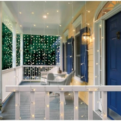 Ambient lighting for your outdoor space with the XL Outdoor Solar LED Curtain String Lights from Merkury Innovations. Includes 15 strands with 240 warm white LED lights. Easily select between the steady glow or flashing modes. Charges from sunlight – no outlet or electricity required. Automatically powers on at dusk and off at dawn. Optional stake for mounting in grass, soil or hedges.