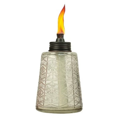 Few things are as enjoyable as dining outside with family and friends. Next time you dine al fresco, gather everyone around your table to experience the warm glow of natural flame lighting. A TIKI Brand Molded Glass Tabletop Torch makes a perfect centerpiece to illuminate your table and your conversations. Group more than one together to create a striking focal point or use individually as colorful accents on tables around your yard or patio. Each 12oz fill delivers up to 5 hours of burn time when used with TIKI Brand Torch Fuel. Available in Red, Clear, and Blue glass, the modern design of these table torches looks great with any style of décor for any holiday party or occasion. TIKI Brand Molded Glass Tabletop Torches are sold separately and come with the 6 inch tall glass vessel, a long-lasting fiberglass wick, and a metal snuffer to extinguish the flame at the end of the night. TIKI Brand Torch Fuel sold separately.
