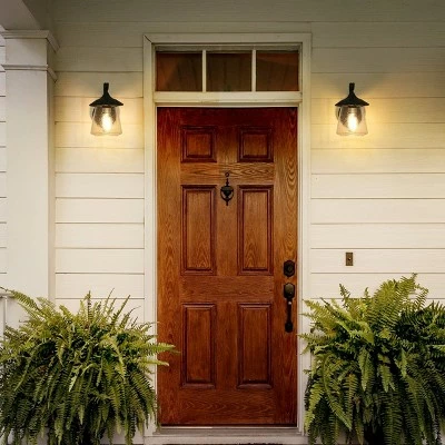 9.8" Metal/Glass Outdoor Lamp Black – LNC
