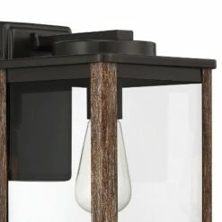 John Timberland Modern Farmhouse Outdoor Wall Light Fixture Dark Bronze Wood Finish Grain 14 1/4″ Clear Glass Panels Exterior House Porch