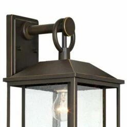 Illuminate the front porch, patio or side of the house with the Outdoor Wall Light from Bel Air Lighting to provide a welcoming glow. Its handsome lines and curled hanger will complement your home’s style perfectly. This outdoor light is made of strong, weather-resistant and rust-resistant aluminum so it retains its look year after year.