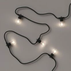 12ct Classic Café Outdoor String Lights Integrated LED Bulb – Black Wire – Enbrighten