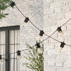 24ct Classic Café Outdoor String Lights Integrated LED Bulb – Black Wire – Enbrighten
