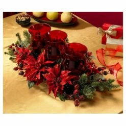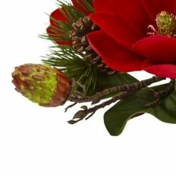 Nearly Natural Red Magnolia and Pine Candelabrum – Red