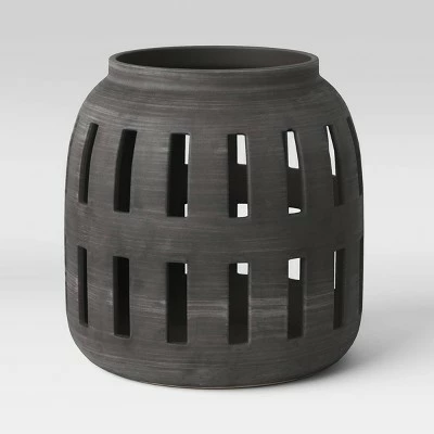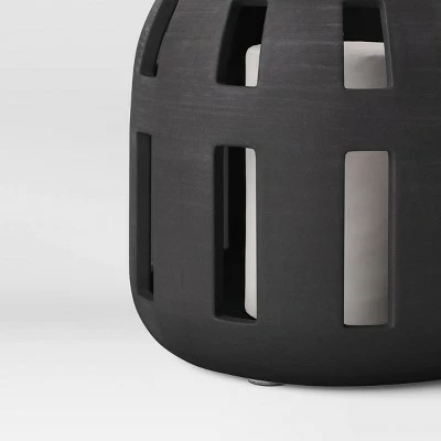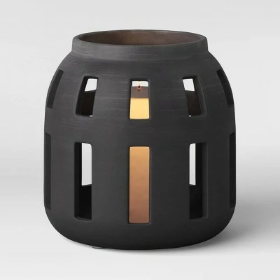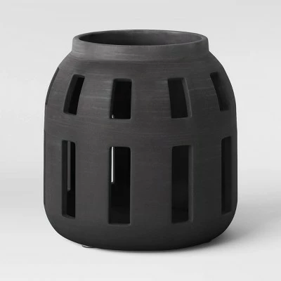 Whether you’re enjoying a chit chat with a group of friends sitting outdoors or just having a quiet moment alone, you’ll create a nice atmosphere by styling your table with this Ceramic Earthenware Cutout Design Outdoor Lantern Black from Opalhouse™. Designed like a planter pot with a wide mouth that fits a pillar candle, this outdoor lantern features cutout detailing to create a stunning display as you place it on the table. Made of ceramic in a simple black finish, it’s great for everyday use or decorating for special hosting and entertaining occasions. Crafted in black, this ceramic lantern lends modern appeal to your outdoor setting and holds one pillar candle to light up your space in easy elegance. Candle not included.