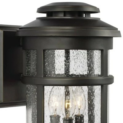 • Durable, weather-resistant StoneStrong composite construction. Antique bronze finish. Clear seeded glass. Wet location rated for outdoor use.