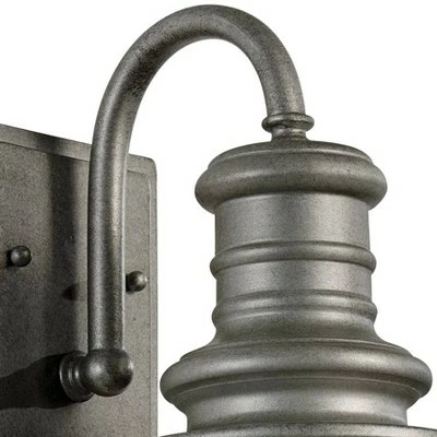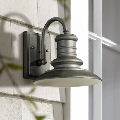 A sleek tarnished silver finish delivers ultimate luxury that embellishes the nautical village theme of this LED outdoor wall light. From the Redding Station collection by Feiss, this light borrows from farmhouse lore to create a period influence and romantic style. This ornate aluminum constructed light is energy-efficient, delivering an average life span of 50,000 hours with three hours of use per day.
