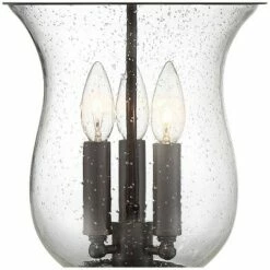 - Uses three maximum 60 watt candelabra base bulbs (not included). Shown with clear glass Edison filament bulbs.