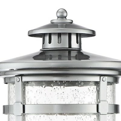 This outdoor post light is a modern take on traditional lantern-style fixtures. The clear seedy glass creates a charming rain-flecked look, and the silvery chrome finish offers a clean modern touch. Not only will this light brighten up your porch or entryway, but it will also add a stylish industrial decorative accent to your home.