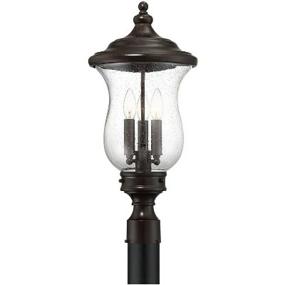 This Carriage energy-efficient LED outdoor post light by Franklin Iron Works™ is decorated with a bronze finish to accentuate the traditional beauty in the design. With clear seedy glass, this light is elegant and eye-catching wherever used. The LED lights ensure a bright and bold presence.