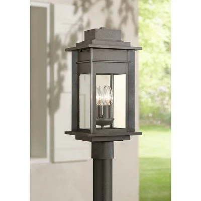 Franklin Iron Works Rustic Outdoor Post Light Fixture LED Black Specked Gray 31 1/2″ Clear Glass for Exterior Garden Yard Driveway