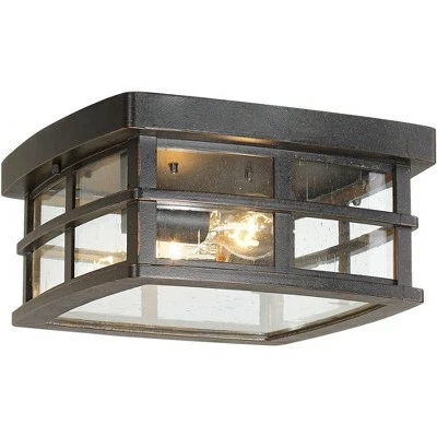 John Timberland Mission Outdoor Ceiling Light Fixture Oil Rubbed Bronze 12″ Clear Seedy Glass for Exterior House Porch Patio Deck