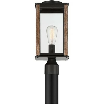 John Timberland Modern Farmhouse Outdoor Post Light Fixture Dark Bronze Wood Finish Grain 17″ Clear Glass Panels for Exterior House Porch