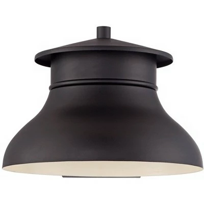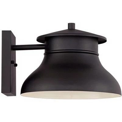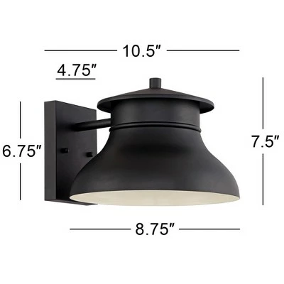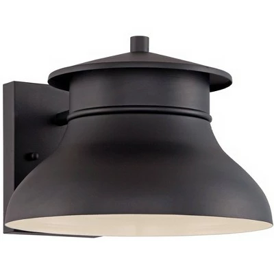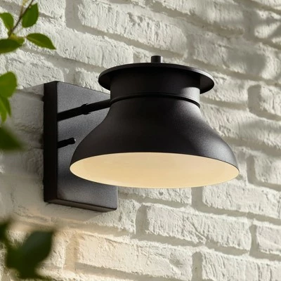 Inspired by modern industrial and barn light designs, this set of 2 outdoor wall lights comes in a durable steel frame, painted black for a classic look. They feature a wide shade that directs light downward, making this a Dark Sky-friendly design. The built-in LED light sources within offers long-saving, energy-saving technology for a modern world.