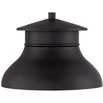 - Black finish steel construction. Non-glass design. Wide shade that opens at the bottom.