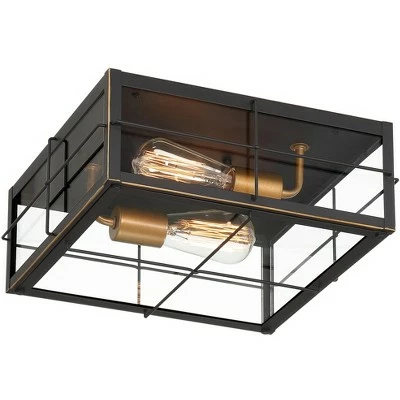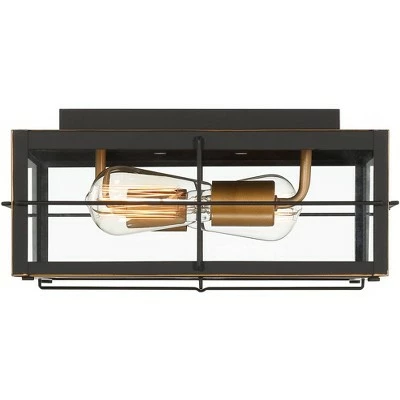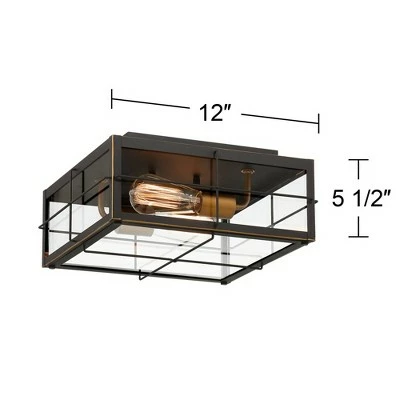 - Modern industrial two-light flushmount ceiling light from the Sunderland collection by John Timberland.