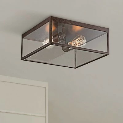 This versatile metal outdoor ceiling light comes in a simple but stylish square box frame. In a bronze finish, it features clear glass panel sides and bottom that let you see the bulbs inside. No matter what style of home you have, this contemporary flushmount ceiling fixture will provide the perfect fit.