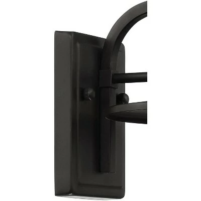 Brighten up a porch or entryway with this outdoor LED wall light. It comes in a strong black finish, and has a wide brim shade and arching rods that contribute to the handsome design. The clear seedy glass creates a rain-flecked look and adds a charming final touch.