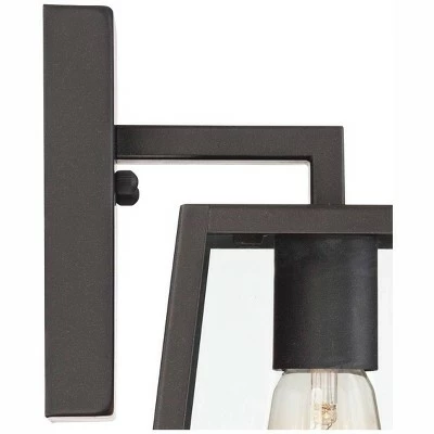 Brighten up your home’s exterior with this handsome outdoor wall light from the Arrington collection by John Timberland. This updated industrial design comes in a tapering black frame with a sleek, straight-lined look. Clear glass panels offer a full view of the beautiful vintage Edison style bulb that is included with purchase. Wet location outdoor rated. Vertical installation and wall mount only.