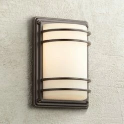 John Timberland Modern Outdoor Wall Light Fixture Rubbed Bronze 11″ Opal Glass Sconce for Exterior House Porch Patio Deck
