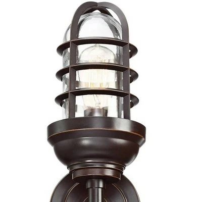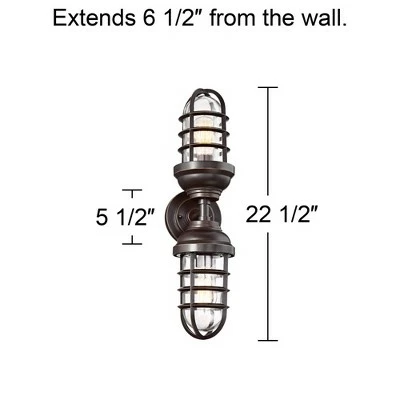 John Timberland Nautical Outdoor Wall Light Fixture Painted Bronze Cage 22 1/2″ Clear Glass Up Down for Exterior House Porch Patio