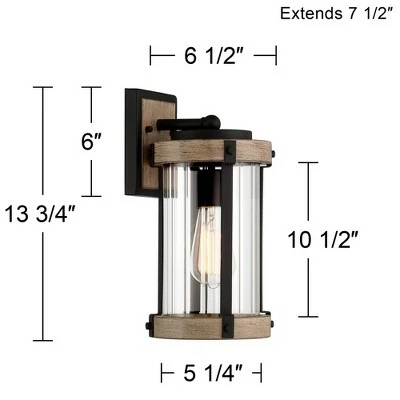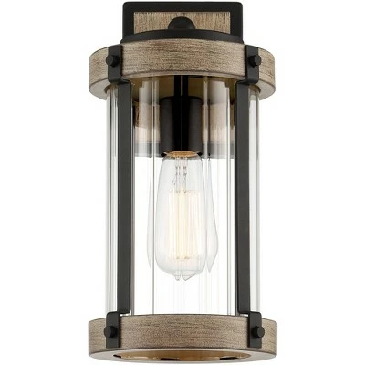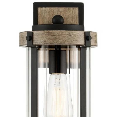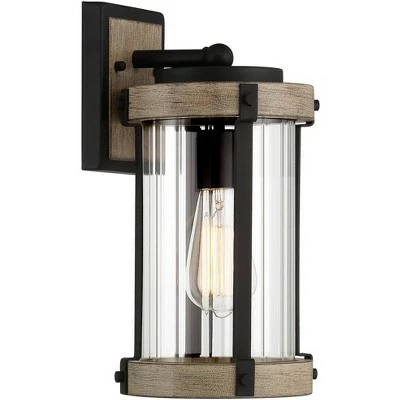 John Timberland Rustic Outdoor Wall Light Fixture Black Metal Gray Wood Finish 13 3/4″ Clear Glass Exterior House Porch Patio Deck Garage