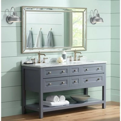 - Steel finish construction made to look galvanized.