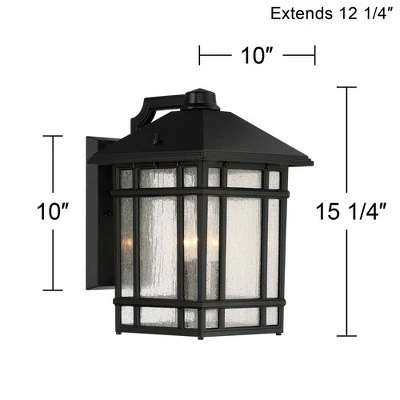 Add Americana styling from the Kathy Ireland Home J du J Sierra Craftsman Collection to your home. This outdoor wall light design was inspired by classic Arts and Crafts looks from the turn of the century. It features a black finish with clear seedy glass. With its clean lines and striking look, this is perfect for adding curb appeal to your home.