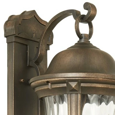 - Rustic traditional outdoor wall light, from the Havenwood collection by Minka Lavery.