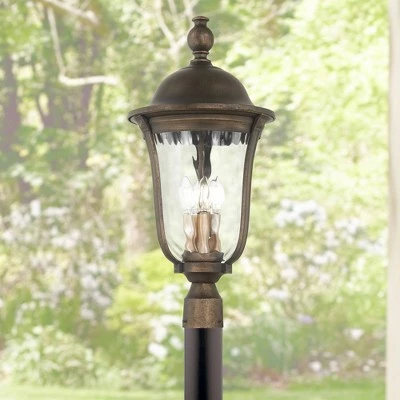 - Rustic traditional outdoor post light, from the Havenwood collection by Minka Lavery.