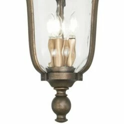 - Clear hammered glass. Black finish over cast aluminum construction. Brass candle sleeves.
