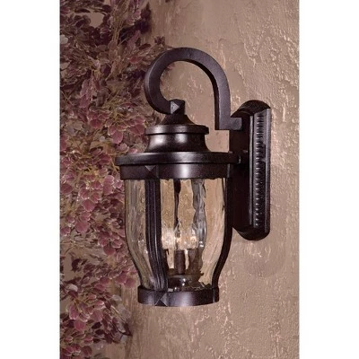Minka’s Merrimack Collection of outdoor lighting features thick, bold lines and hammered glass. Cast aluminum construction is finished with a Corona Bronze finish. The curves in the design and the hammered glass soften the look for a comfortable, welcoming look.