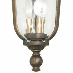 - Heritage™ bronze finish. Mouth-blown ribbed clear glass.