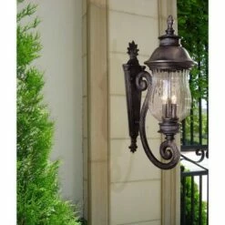 - Based on grand European outdoor fixtures. A traditional look for a porch or garage, from Minka Lavery.