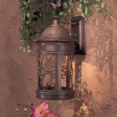 Give your home an infusion of warm Mediterranean style with The Sage Ridge outdoor lighting collection from Minka. This wall mount light features a vintage rust finish and elegant scroll accents. The bulb is tucked up inside the lantern-like enclosure, making the design Dark Sky regulation compliant.