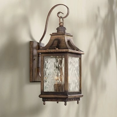 Dress up your outdoor lighting with the Wilshire Collection from Minka Lavery. Finished in a Portsmouth bronze with stylish clear water glass, this outdoor wall light is made of durable aluminum for lasting style. Perfect near garages, entryways, and porches.