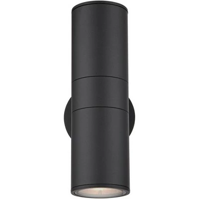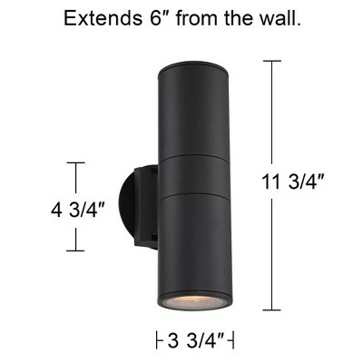 Possini Euro Design Modern Outdoor Wall Light Fixture Black 11 3/4″ Cylinder Up Down Exterior House Porch Patio