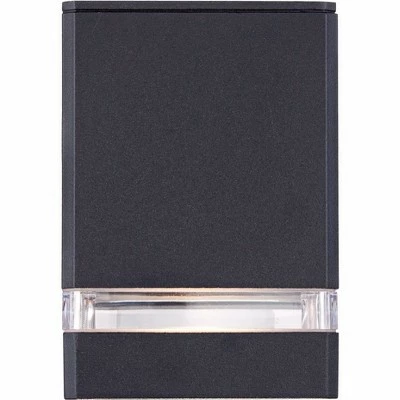 Offering plenty of illumination, this outdoor wall light makes a great addition to an entryway or patio. In a clean-lined modern design, it features a black finish over a die cast aluminum frame and clear glass accents. This versatile fixture can be installed with the light pointing up or down, allowing you to use it an uplight or downlight.