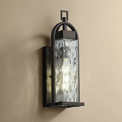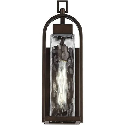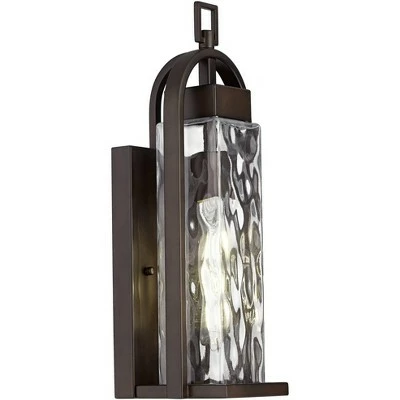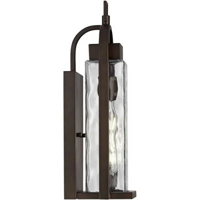 Beautiful water glass panels define this contemporary design from the Possini Euro Design® brand. A modern lantern design with industrial inspiration, this outdoor wall light fixture comes in a straight-lined steel frame for a hardy effect. A handsome, understated bronze finish completes the graceful look.