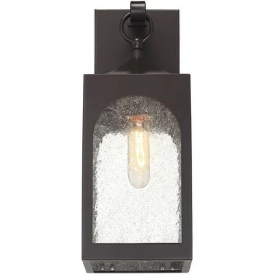 A geometric shape with gentle curves creates the silhouette of this charming outdoor wall light. A bronze finish and seedy glass create a look that seems weathered, but provides a contemporary feel. The illumination from a single bulb is gently diffused, perfect for flanking the sides of an entryway or enhancing a patio space.