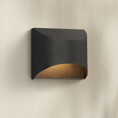 The discreet design of this Ratner energy-efficient LED down light outdoor wall light by Possini Euro Design® is made to help accommodate the look and feel of any home. The textured black finish is neutral to blend in with the backdrop it is used on. The down light exudes an attractive light to enhance the environment near your home.