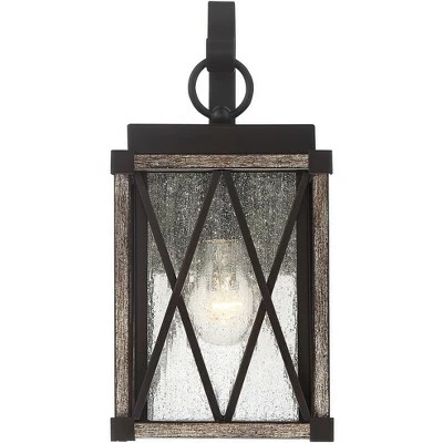 Adorn the outside of any home with this charming rustic wall light design. With clear seedy glass panels and weathered finishes, the design is perfect for farmhouse or cottage-inspired homes. The bronze and wood finishes add the perfect hint of character.