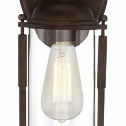 Franklin Iron Works Vintage Industrial Outdoor Wall Light Fixture Bronze 15″ Clear Glass Edison Bulb for Exterior House Porch