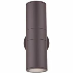 Possini Euro Design Modern Outdoor Wall Light Fixture Matte Bronze Cylinder 6 1/2″ Tempered Glass Lens Up Down for Exterior House