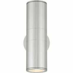 Possini Euro Design Modern Outdoor Wall Light Fixture Set of 2 Brushed Nickel Downlight Uplight 11 3/4″ Glass Exterior House Porch